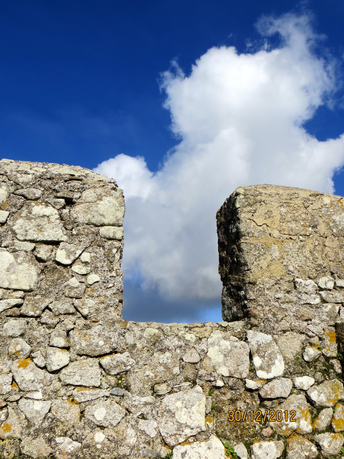 It was sunny the following day and off I went to Sintra. A few friends had told me that the visit should be a priority. Friends and Guide books maybe descriptive but I really didn't know what I was going to see. I had read that the walk was over 4 kilometres up hill to the Moorish castle and the Pena palace and gardens were a must. After an hours metro and train trip, I could see the crowds rushing for the bus. I decided to set out on foot. I spent more time walking and going up or coming down but the gardens and woods were divine. A big compensation was the smell of the gum trees and seeing gum nuts along the way. But was the view worth it when I finally got to the top over an hour later? This is the Moorish Castle.